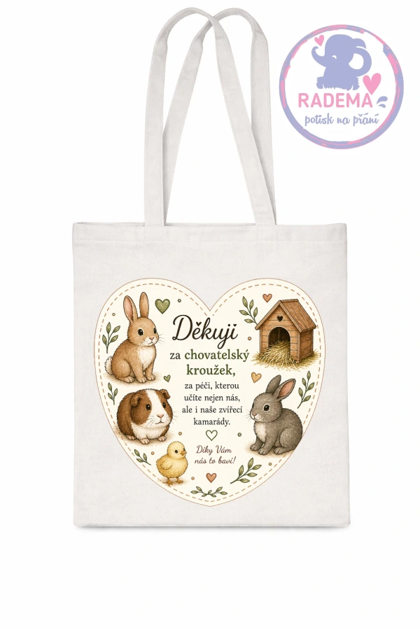 Plátěná taška - Děkuji - chovatelský kroužek - škola / školka