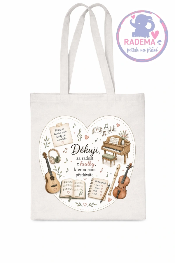 Plátěná taška - Děkuji -Hudební výchova - škola