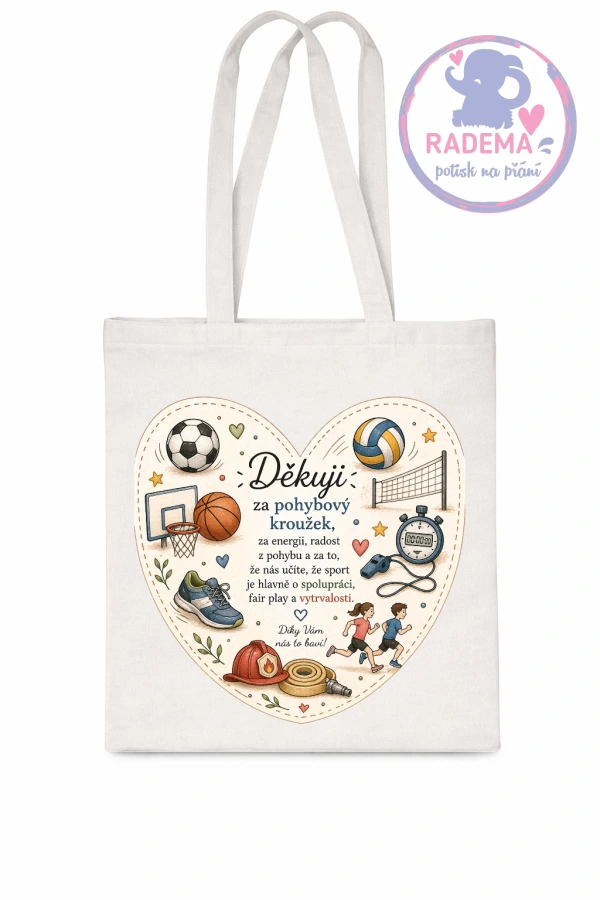 Plátěná taška - Děkuji - pohybový kroužek - škola / školka