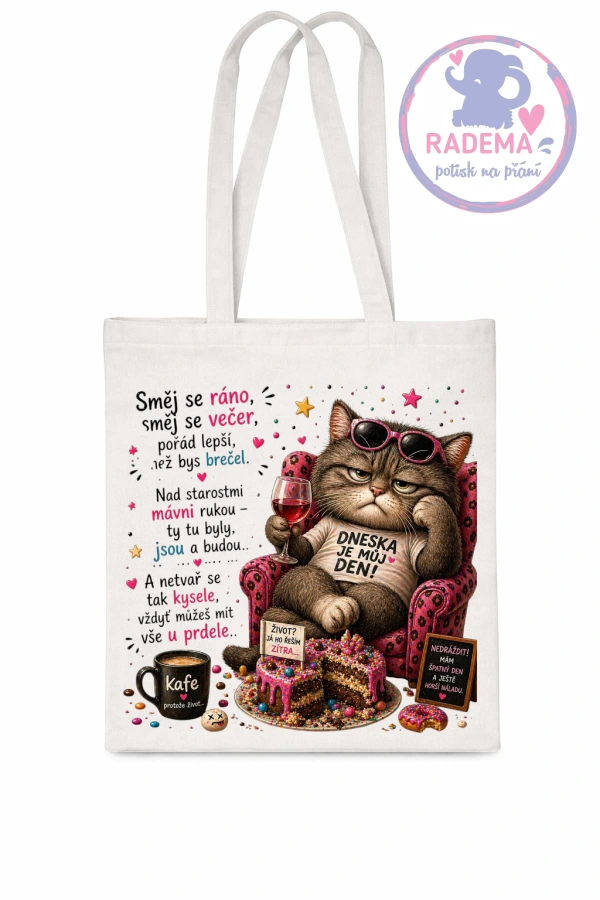 Plátěná taška - Kočka - Směj se ráno, směj se večer...