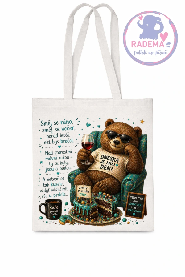 Plátěná taška - Medvěd - Směj se ráno, směj se večer...