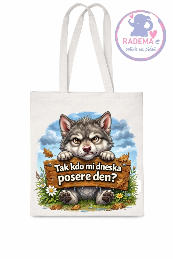 Plátěná taška - Vlk - Tak kdo mi dneska posere den?