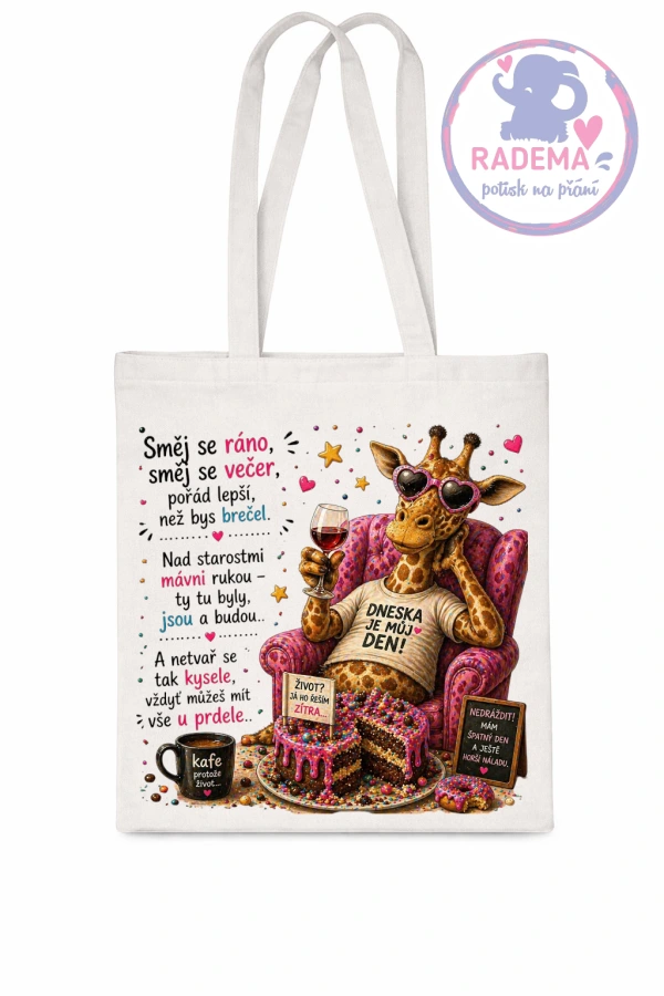 Plátěná taška - Žirafa - Směj se ráno, směj se večer...